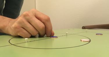 Mini Penny Green board - varnished, wood-veneered chipboard. Euro 1c coins - enamel paint.