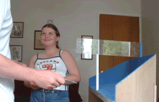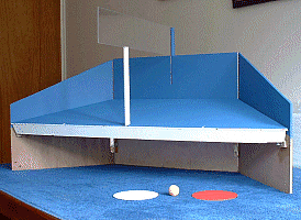 To play Roof Ball you need quick reflexes and good hand-eye coordination. If you like table tennis and squash then you'll probably love it. Small enough to fit on your desk, table or kitchen counter. You hit the ball on to the roof so that it rolls or bounces off on your opponent's side of the chimney. You can hit it either side of the chimney - roof side or open side. The ball is made of sponge and when given spin will curve through the air. Good players learn to swerve the ball around the open side of the chimney and on to the corner of their opponent's roof. |