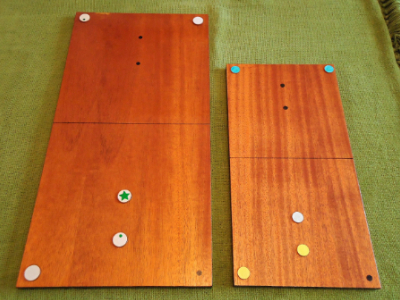 The great thing about penny red is that it can be played with so many different types of coins. Note the relative sizes of a Tupenny Red and Penny Red board. |